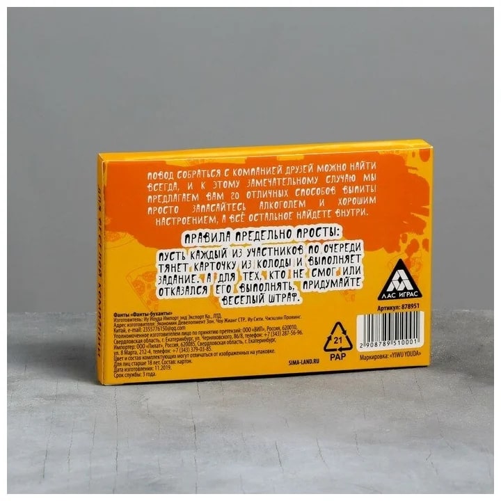 Купить игра для компании "фанты буханты" 20 карт от 100 руб. с доставкой до пункта выдачи в Баймаке. Интернет магазин ДекаМаркет. Оплата при получении.